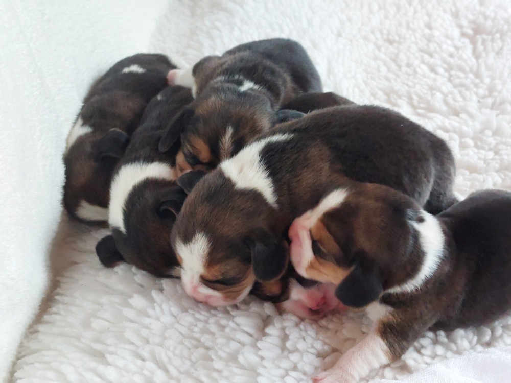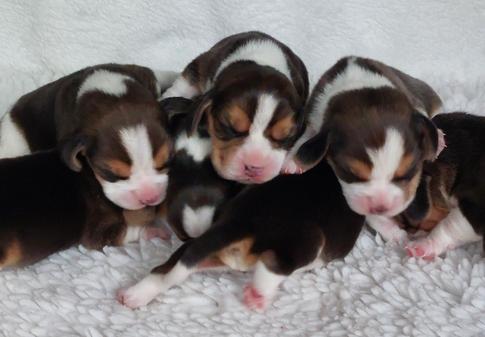 9.2.2026 se nám narodila štěňátka!!! 5 kluků a 2 holčičky Maminka Oxanka /říkáme ji Bigginka - po její babičce/ se narodila v naší chovatelské stanici. Je to hravá a poslušná tricolorní fenečka. Na výstavách získala výborné posudky a bez problémů byla zařazena do chovu. Tatínek Ch. Eardley Eager Edgar /Edie/ se narodil ve Velké Británii a jeho majitelkou je ing. Alice Čančíková /CHS Alikiss/. Edoušek je ČESKÝ ŠAMPION, KLUBOVÝ ŠAMPION BC ČR, ČESKÝ GRAND ŠAMPION,Vítěz dorostu speciální výstavy 2020, Best Puppy, Klubový vítěz dorostu 2020, Vítěz speciální výstavy 2021, Top Výstavní bígl 2021-4místo, CAC, r.BOS, Best non-Tri, Nejlepší plemeník - KV 2022, SV 2022, SV 2023, KV 2024 Především je to ale velký mazel s klidnou a ovladatelnou povahou!!!
